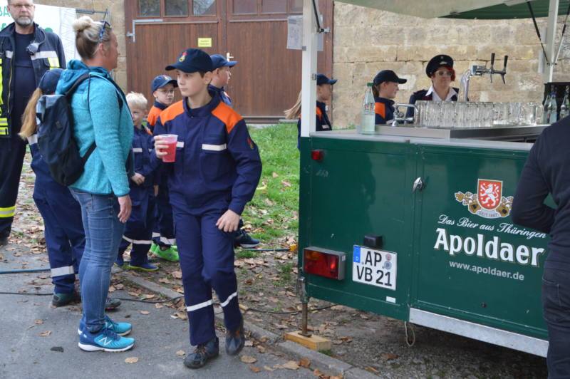 Schon drei Tage zuvor wurde das dreistimmige Geläut nach Kapellendorf gebracht und würdevoll geschmückt, bevor es dann am 31. Oktober um 13 Uhr mit einem Festumzug durch das Dorf ging. Gezogen wurden die Glocken auf dem Festwagen von einem Lanzbulldog gefolgt von den Vereinen unseres Dorfes. Die schwungvolle Musik der Kapelle lud auch viele Einwohnerinnen und Einwohner ein, sich dem Umzug im Vorbeiziehen anzuschließen.