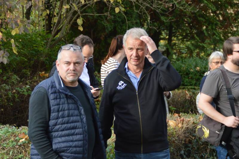 Nun wurden die mit herbstlichen Kränzen aus Blumen und Tannengrün geschmückten Glocken nach und nach in den Glockenturm gezogen, zuvor einzeln mit den neuen Klöppeln von ihren Läutern angeschlagen.